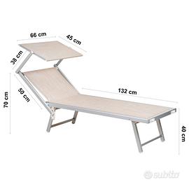 CARATTERISTICHE: Misure aperto - Larghezza: 60 Cm, Profondità: 190 Cm, Altezza: 40 Cm. Misure chiuso: 70 x 15 x 150 Cm. Altezza da terra: 40 Cm. Carico massimo supportato: 150 Kg.