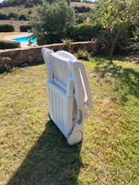 Lettino prendisole Pieghevole, con ruote e cassetto portaoggetti, in resina bianca, ditta di qualità Nardi. Usato ma in ottime condizioni ! Dispongo di due lettini, se acquistati in coppia, posso scontare qualcosa. Solo ritiro in loco.