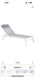 Elegante lettino da giardino ancora imballato. Struttura in alluminio verniciato a polvere quindi antiruggine, con rivestimento in tessuto sintetico. Schienale regolabile in 6 diverse posizioni. Resistente ai raggi UV