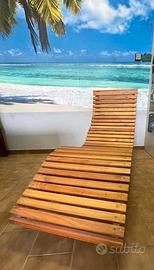 Lettino relax in legno, struttura in pino lamellare e seduta in larice. Robusto, stabile e perfetto per l’esterno: non si rovina con pioggia e sole.