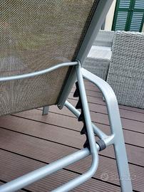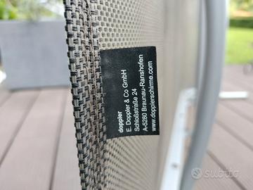 Vendo LETTINO SDRAIO PRENDISOLE originale marchio DOPPLER™ ACTIVE alluminio e tessuto. Struttura in alluminio verniciato a polvere. Rivestimento in tessuto nero. Schienale regolabile in diverse posizioni. Dimensioni e peso (netto) Peso: 7,2 kg Altezza: 98,0 cm Larghezza: 68,0 cm Profondità: 198,0 cm Altezza di seduta 34 cm Costo da nuovo 195€ Condizioni generali PERFETTE. Ritiro in loco. Non si effettua spedizione.