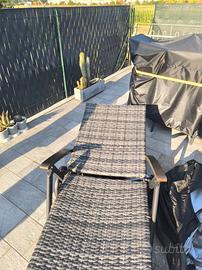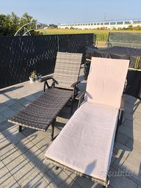 vendo 2 sdraio in VERO rattan della TECTAKE. in perfette condizioni. sono impermeabili e resistenti ai raggi uv con ruote per poterli spostare con facilità, molto leggeri e resistenti. telaio in alluminio verniciato braccioli in legno...NO PLASTICA portata max di 150 kg 7 livelli di inclinazione regalo cuscini bicolore bianco e grigio e coperture misure da chiuso 130x30x75 cm misure seduta 120x56 misure schienale 75x56 prezzo a unità 85 spedizione per unità 45 leggero sconto per acquisto coppia ritiri presso la mia abitazione a Valfenera ricerche sdraio, lettino, prendi sole, esterno, giardino, terrazzo,piscina.