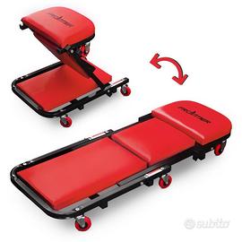 Lettino sgabello sottomacchina 2 in 1 con ruote in acciaio rosso 0.8 mm