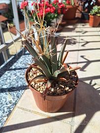 cactus dalla forma molto particolare, in vaso da 12cm. La prima foto è un esempio del fiore prodotto da questa pianta.