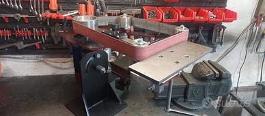 Il prezzo di produzione della rettificatrice dipende dalla potenza del motore. Da 0,75 kW a 3 kW. Nastro 50x1200-2500 mm. Basamento macchina in metallo spesso 12 mm. Traversa 22x40 mm piena, traversa del tavolo 25x25 mm piena, tavolo 120x350 mm, piastra di pressione 50x250 mm. Rulli _ST45 drive f130 mm bilanciati, rullo tenditore 75 mm, dritto f60 mm.