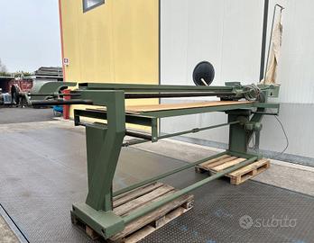 Cod. ATAR987 Levigatrice a nastro orizzontale da 2800 mm usata Funzionante in ottime condizioni, usata pochissimo 380 V 1,1 kw Con piano oscillante Dimensione base piano oscillante: 2800 x 800 mm Con motore d'aspirazione indipendente Larghezza rullo per carta vetrata: 165 mm Lunghezza carta vetrata da rullo a rullo: 3900 mm circa Dimensioni: Lunghezza: 4450 mm Larghezza: 1350 mm Altezza: 1650 mm