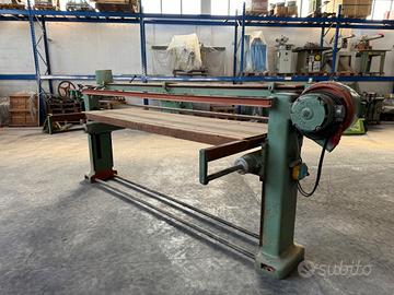 MACCHION ATTREZZATURE S.a.s. Centro affilatura - Commercio macchine per legno Video e foto su: INSTAGRAM: Macchion_Attrezzature FACEBOOK: Macchion Attrezzature WEB: macchion.it PAGAMENTI RATEIZZATI – NOLEGGIO. Codice Articolo: UR 13 – usato come ritirato. Levigatrice a nastro per falegnameria. Marca Pasubium. Volt 380 trifase con ventola aspiratore integrata nel motore. Sollevamento banco manuale. Dimensioni del banco di lavoro mm 2700 x 800. Sviluppo nastro mm 8300 x 120. Lunghezza macchina mm 4350. Larghezza macchina con banco mm 1500. Larghezza senza banco mm 500. Altezza mm 1500. Il prezzo indicato di € 350 è imponibile netto fatturabile a rivenditore o per export.