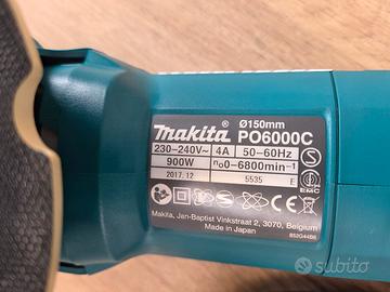 Lucidatrice Orbitale MAKITA PO6000C - Due modalità di rotazione - Movimento orbitale per finiture più devastanti. E rotazione orbitale, il rotore ruota compiendo movimenti orbitali e ruota su se stesso, per finiture fini e cerate. - Controllo della velocità dell'orbita con 5 impostazioni di velocità che variano le orbite al minuto - Velocità variabile sul grilletto - Pulsante di blocco, per svolgere lavori prolungati evitando l'affaticamento dell'utente - Copertura di ventilazione in gomma rimovibile, impedisce alle particelle di entrare nel motore prolungandone la vita di utilizzo - Speciale per auto e carrozzeria - Protetto con elastomero nella parte superiore e nelle zone di presa, l'utensile può essere capovolto senza danneggiare la zona di appoggio - Impugnatura ergonomica antiscivolo con due zone di presa, offre maggiore comfort e controllo della macchina quando si opera con due mani sul materiale da lucidare