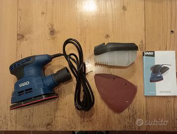 Levigatrice palmare VARO, 220 W, NUOVA, mai usata, in confezione originale. Corredata da raccogli polvere, 6 carte vetrate di varie grane nuove, libretto istruzioni. Vendo a causa di acquisto doppio.