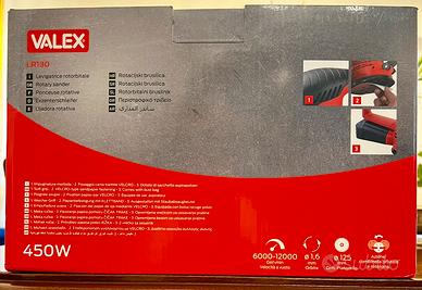 La levigatrice rotorbitale Valex LR130 è alimentata da un motore elettrico da 450W. Lavora con una velocità a vuoto di 6000-12000 giri/min. La dimensione della carta/platorello è di Ø125mm. Questa levigatrice lavora con un’azione combinata orbitale e rotatoria. L’impugnatura morbida garantisce una presa sicura e confortevole ed è provvista di sacchetto aspirapolveri. Il fissaggio della carta avviene tramite sistema a strappo.