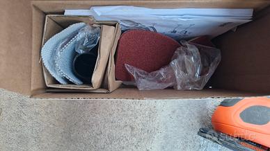 levigatrice utilizzata solo una volta. il velcro del puntalino si è un poco allungato, ma non è necessario da cambiare. completo di tutto gli accessori.