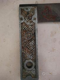 2 antichi utensili da artigiano: lima con manico in legno, squadra per falegname. Condizioni come da foto.