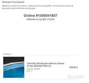 Vendo solo il liner (non la piscina).