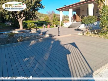 I Listoni in WPC , sono i nostri prodotti più venduti perchè oltre alle eccezionali caratteristiche qualitative , si prestano per la loro versatilità a un grandissimo numero di impieghi , sia in ambito privato che in ambito professionale. Un materiale che regala una atmosfera calda e suggestiva e quasi privo di manutenzione. Acquistate da noi perche non siamo rivenditori ma importatori , avrete il prezzo più basso e la qualità migliore. Visita il nostro sito LISTONIWPC_IT tantissimi formati e misure e colori per tante tipologie di utilizzo : Pavimentazioni Recinzioni Rivestimenti Frangisole Frangivista Frangivento Steccati divisori Il prezzi partono da 5€ al metro in base al tipo e al colore , scontabili in base alle quantità. COS'E' il WPC? Il pannello WPC, noto anche come Wood Plastic Composite o legno composito, è un materiale artificiale creato per estrusione a caldo legando fibre naturali di legno polverizzato a una resina speciale formata da polimeri e additivi. SPEDIZIONE Spediamo in tutta Italia e isole a preventivo. Ritiro in magazzino sempre possibile. ACCESSORI Forniamo tutto il necessario per il montaggio -Barre di supporto -Clip di fissaggio in acciaio INOX -Angolari per riquadro - Profili VARI PREVENTIVI Forniamo preventivi al pezzo e al m2. PAGAMENTI Possibile il pagamento alla consegna fino a metà importo. INFORMAZIONI Per qualsiasi informazione visita il nostro sito listoniwpc_IT
