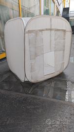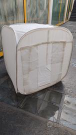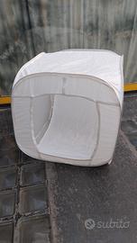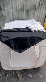 Lite box 80x 80x 80 portatile richiudibile facilmente nella sua borsa. 2 fondali 1bianco 1nero e tendine per chiusura anteriore. Possibile spedizione