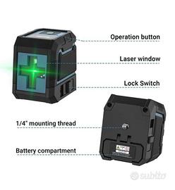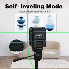 ✅NUOVA✅Livella Laser A Croce Con Raggio Verde. Con Modalità Di Regolazione Orizzontale Manuale/ Automatica, Livello Laser A Linea Orizzontale/Verticale Commutabile, Con Base Magnetica Flessibile A 360°.