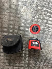 Questo dispositivo è una Livella Laser Manuale Black+Decker BDL120. Funzionalità: Proietta una linea laser orizzontale o verticale su una parete per allineamenti precisi. Rotazione: La base girevole inclusa permette la rotazione a 360° per proiettare la linea in qualsiasi direzione. Livellamento: È dotata di fiale di livellamento manuale illuminate per facilitare l'uso in condizioni di scarsa luminosità.