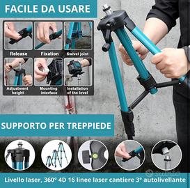 Livella laser Autolivellante 360° 4D, Laser 16 linee Cantiere 3° Autolivellante, con 2 Batterie e Supporto Rotante, Incluso Treppiedi 1.2m con 3 Altezze Regolabili, Telecomando e Valigetta Inclusi