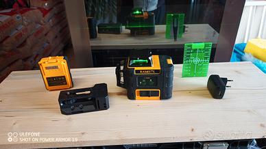 Vendo livella Laser Kaiweets 360° , una linea orizzontale a 360°. + 4 linee verticali, ottima per cartongessista, molto precisa, in dotazione 2 batterie praticamente nuove, staffa girevole con magnete, caricabatterie e borsa di trasporto, vendo per cessata attività,