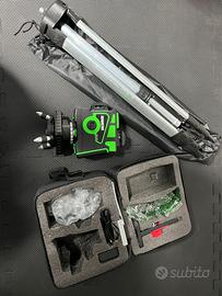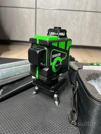 Questo è un tipo di livello laser e treppiede premium. 12 linee 3D per un posizionamento più preciso, con sistema autolivellante, flessibilità e stabilità. E il treppiede è realizzato in lega di alluminio spessa, regolabile in 3 altezze, con una livella per aiutarti a verificare se il treppiede è orizzontale o meno.