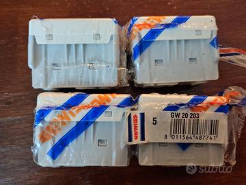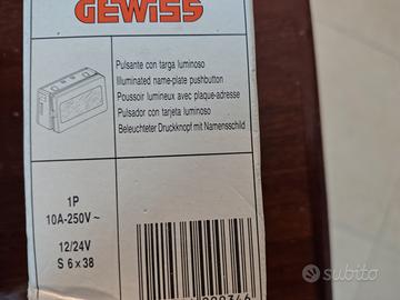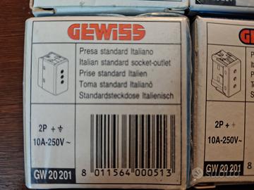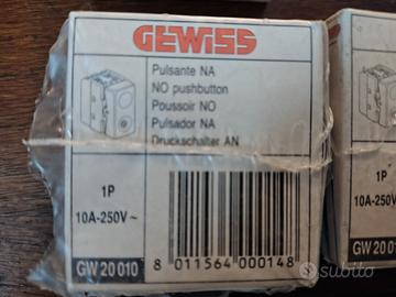 Lotto composto da 16 frutti Gewiss linea System. Composizione lotto: - 2 pulsanti NA GW 20010 - 5 prese standard italiano 10 A GW 20201 - 4 prese bipasso 10/16A GW 20203 - 1 pulsante targa luminoso GW 20024 - 1 interruttore luminoso GW 20572 - 1 interruttore GW 20501 - 2 deviatori GW 20576. Materiale nuovo mai usato Condizioni come da foto allegate.
