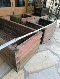 N. 4 fioriere/cassette in legno massello stile rustico, 2 rettangolari e 2 quadrate , varie misure Legno invecchiato naturale. Per giardino o terrazzo. Zona Treviso, solo ritiro.