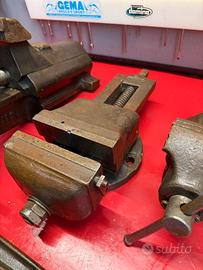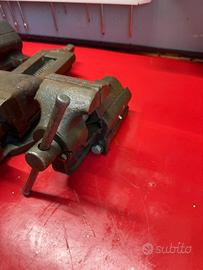 Vendo lotto di 3 morse da banco professionali di grandi dimensioni, robuste e pesanti, ideali per officina meccanica, falegnameria, restauro o collezione industrial vintage.