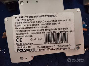 Vendo 7 interruttori magnetotermici EATON, modello PLN4‑C10/1N. Specifiche: 10A – curva C – 1P+N – 230V~. Usati, smontati da quadro funzionante, morsetti e leve in ordine.