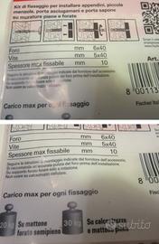 kit di fissaggio ideale per installare : appendini , piccole mensole , porta asciugamini e porta sapone ecc...