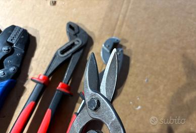 Lotto attrezzi in ottimo stato (come da foto) composto da: - Crimpatrice con ganasce sostituibili per capicorda o puntalini. - Chiave autoregolante Parkside (sostituisce chiavi dalla 13mm a 24mm) - Pinza regolabile Multiuso Parkside - Cesoie per lamiera - Spelafili automatica Werckmann Per: Auto, moto,bici,officina, garage ecc. Spedisco solo con InPost se acquistate con TuttoSubito.