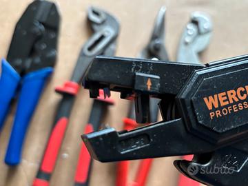 Lotto attrezzi in ottimo stato (come da foto) composto da: - Crimpatrice LUX con ganasce sostituibili per capicorda o puntalini. - Chiave autoregolante Parkside (sostituisce chiavi dalla 13mm a 24mm) - Pinza regolabile Multiuso Parkside - Cesoie per lamiera - Spelafili automatica Werckmann - 3 nastri isolanti marca Scapa (confezione nuova) Per: Auto, moto,bici,officina, garage ecc. Prezzo poco trattabile. Spedisco solo con InPost se acquistate con TuttoSubito.