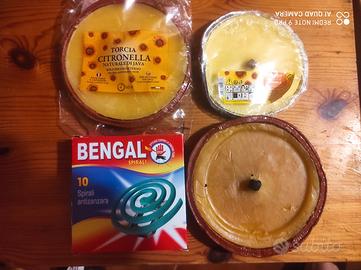 Cedo per inutilizzo Lotto composto da 2 Candele Nuove Citronella, 1 candela citronella quasi nuova + confezione 10 spirali nuove.