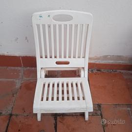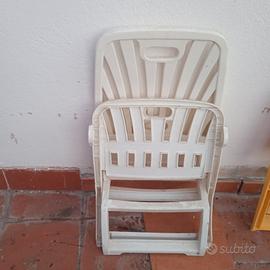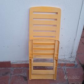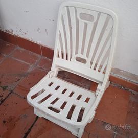 lotto di 3 sedie da spiaggia pieghevoli, in plastica rigida -gialla con seduta da 38x29 cm con ampio schienale alto 60 cm. seduta e schienale perpendicolari fra loro ma inclinata verso alto rispetto al suolo -bianca piccola con seduta 33x27 cm e schienale alto 44 cm. La seduta quasi parallela al suolo. per taglie S, M. -bianca grande seduta 42x33 cm e schienale 50 cm. Leggermente inclinata verso alto. comoda resistente adatta anche per tg L/XL VENDO LOTTO COMPLETO AL PREZZO INDICATO
