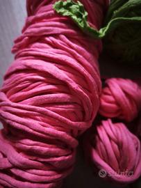 lotto gomitoli fettuccia per uncinetto e ferri da maglia colore verde, rosa e marrone ricamato gr 520 totali art 010