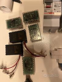 Vendo lotto di materiale elettrico usato, proveniente da smontaggio impianto, in buone condizioni e funzionante. Il lotto comprende (vedi foto): •Magnetotermici e differenziali ABBe bticino •Moduli su guida DIN (relè, comandi, alimentatore switching) •Interruttore crepuscolare BTicino •Prese, frutti, supporti e placche •Schede elettroniche / moduli relè •Lampade alogene lineari e lampadina Osram •Portalampada, morsetti, cablaggi e accessori vari Materiale ideale per: •elettricisti •manutentori •hobbisti •ricambi o piccoli impianti