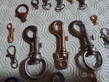 Vendo un lotto di 15 moschettoni e/o ganci girevoli nuovi e mai usati per il collare dei cani, per gli zaini, per le chiavi ed altro ancora. Vendo 8 euro tutti e 15 i pezzi.