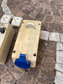 Vendo in blocco un lotto di prese e quadri elettrici da esterno, adatti per uso industriale, officine o cantieri.