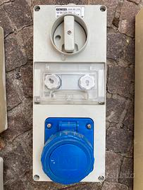 •1 scatola con presa industriale CEE blu 230V 16A + sezionatore rotativo