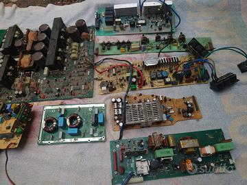 Le schede possono essere utilizzate per recupero rame, oro, alluminio, ma anche per i componenti per il fai da te. Ci sono grossi dissipatori in lega, condensatori, tutto smontato da apparecchiature funzionanti.