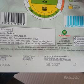vendo lotto da 106 bustine di semi di ortaggi vari marche Four e Royal seeds per cessata attività a prezzo modico. scadenze come da foto 06/2027 e 12/2027. Spedizione possibile o ritiro a mano da parte dell'acquirente