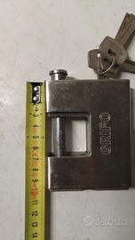 Lucchetto antiscasso / antifurto corazzato per serrande e garage GRIFO, corpo in Ottone Massiccio corazzato in acciaio inox antiperforazione, Asta Anti-Strappo in acciaio cementato, base 90mm, bocca da 30mm, 4 chiavi in dotazione EUR 30,00