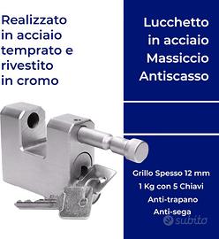 Lucchetto Corazzato 1Kg con 5 Chiavi, Grillo 12mm in Acciaio Temprato per Moto, Serrande, Garage