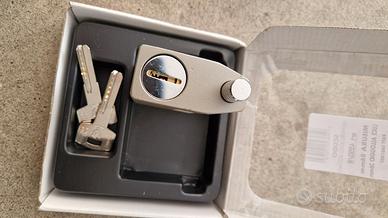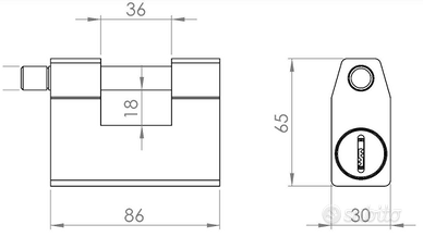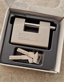 Lucchetto di alta sicurezza monoblocco in acciaio temprato dotato di defender a protezione del cilindro, fabbricato in Italia.