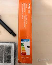 Luce con pannello solare per esterno, con supporto per muro, telecomando a distanza e istruzioni. Classe energetica A