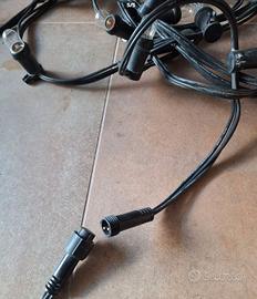 Luci esterno giardino, utilizzate una volta per fare una festa. Sono 6 serie da circa 5 metri ciascuna, per totali 30 metri. Non sono le luci dei cinesi, collegamento in parallelo, se si rompe una lampadina, sostituibile, funziona lo stesso. complete di morsetti. Qualche lampadina da sostituire,