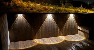 Set di due luci solari per esterni, ideali per illuminare giardini o vialetti.