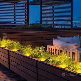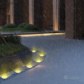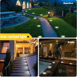 Luci Solari da Giardino Tonde LED RGB Incasso Terra IP65 Luci da Giardino 4x Illumina i tuoi spazi esterni con eleganza e tecnologia grazie a questo set di 4 faretti solari a LED. Progettati per offrire un'illuminazione d'atmosfera e funzionale, questi punti luce sono la soluzione ideale per chi desidera decorare il giardino senza costi in bolletta e senza la necessità di complessi impianti elettrici. Ogni faretto integra 8 LED ad alta luminosità che permettono di passare da una suggestiva modalità RGB (con sfumature automatiche di 7 colori) a una classica luce bianca (Fredda o Calda), adattandosi perfettamente a ogni stile architettonico. EFFICIENZA ENERGETICA E AUTOMAZIONE Grazie al pannello solare superiore, i faretti si ricaricano durante le ore diurne. Il sensore crepuscolare integrato attiva automaticamente l'illuminazione al tramonto, garantendo fino a 10 ore di luce continua con una ricarica completa. CARATTERISTICHE PRINCIPALI EFFETTO RGB DINAMICO: Sfumatura automatica tra 7 colori diversi, ideale per feste ed eventi. LUCE BIANCA SELEZIONABILE: Modalità Bianco Freddo o Caldo per un'illuminazione sobria e funzionale. RESISTENZA CERTIFICATA: Realizzati in Acciaio Inossidabile e ABS rinforzato, resistono a pioggia, gelo e calpestio. INSTALLAZIONE IMMEDIATA: Nessun cavo richiesto. Si fissano al terreno tramite il picchetto incluso in pochi secondi. TECNOLOGIA ECO-FRIENDLY: Alimentazione 100% solare con batteria interna ricaricabile da 600 mAh. SPECIFICHE TECNICHE Quantità: Set da 4 pezzi Sorgente Luminosa: 8 LED High-Power per ogni faretto Modalità Luce: RGB (7 colori) + Bianco Freddo/Caldo Materiale: Acciaio Inossidabile e Plastica ABS ad alta densità Batteria: Ni-MH 600 mAh (integrata e ricaricabile) Tempo di Ricarica: 6-8 ore di esposizione solare diretta Autonomia: 8-10 ore di funzionamento notturno Dimensioni: Design ultra-piatto calpestabile UTILIZZO CONSIGLIATO Perfetti per delimitare bordi prato, sentieri, vialetti d'ingresso e aiuole.