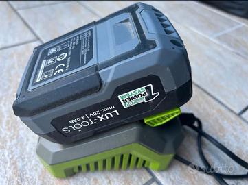batteria agli ioni di litio LUX-TOOLS 1 PowerSystem max. 20V | 4.0Ah su un caricabatterie.