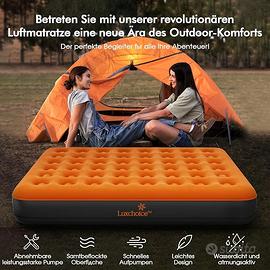 【Installazione facile e rapida】 Il nostro innovativo materasso gonfiabile matrimoniale arancione Luxchoice è dotato di una pompa ad aria rimovibile che consente almeno sei gonfiaggi o sgonfiamenti. Basta premere il pulsante e impostare il gonfiaggio automatico entro 3 minuti. Niente più gonfiaggi manuali e ingombranti. La pompa portatile può essere utilizzata anche per altri accessori estivi gonfiabili, come salvagenti all'aperto, cuscini gonfiabili, ecc