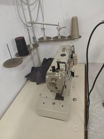 Vendesi macchina da cucire , tre aghi , taglia e cuci, come da foto, vendo in blocco compresi di tavolo d appoggio